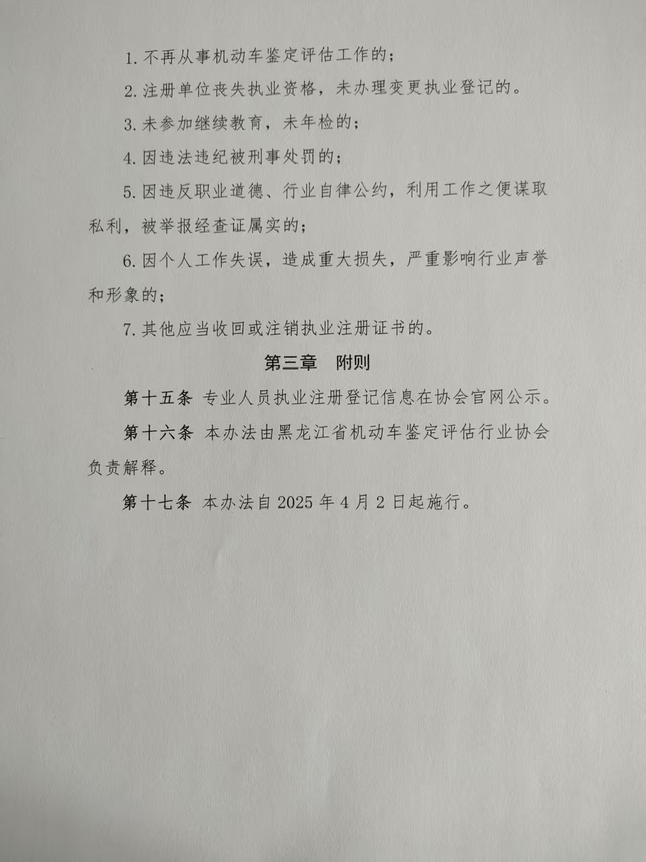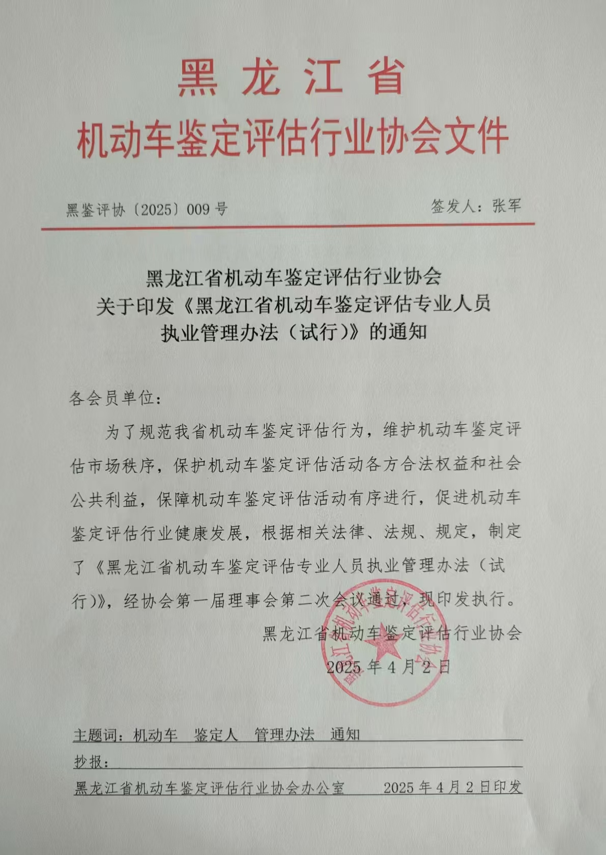 黑龙江省机动车鉴定评估行业协会 关于印发《黑龙江省机动车鉴定评估专业人员 执业管理办法(试行)》的通知