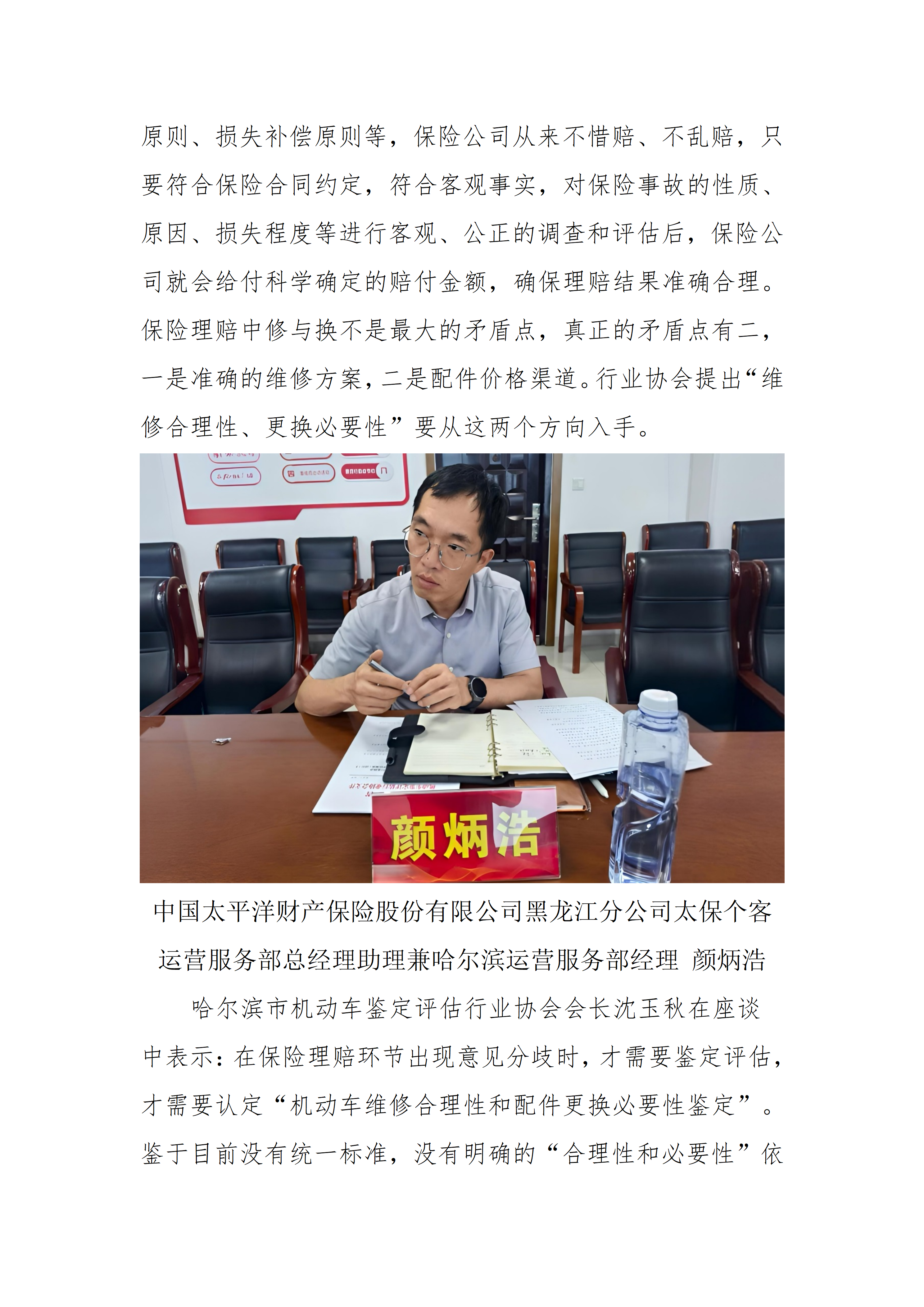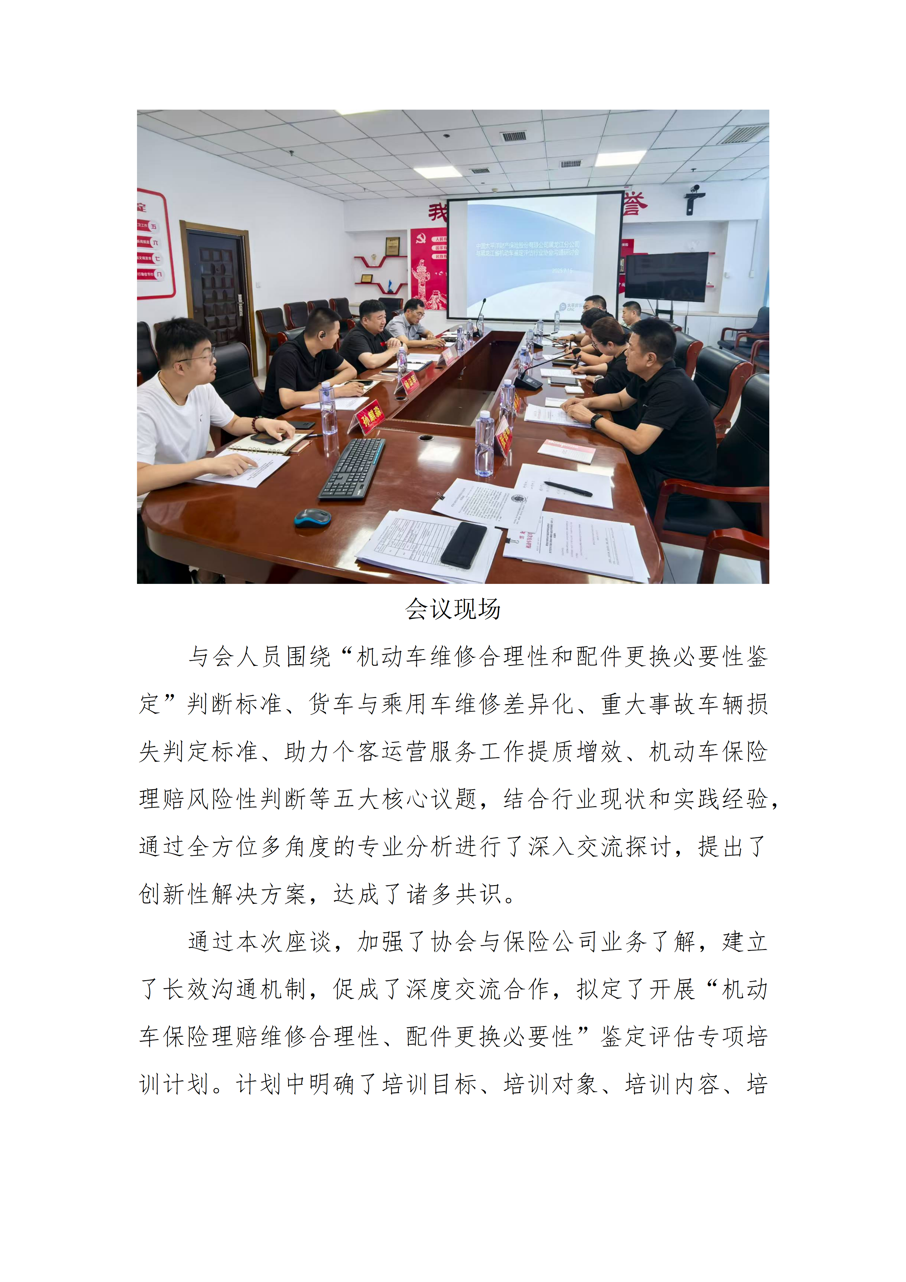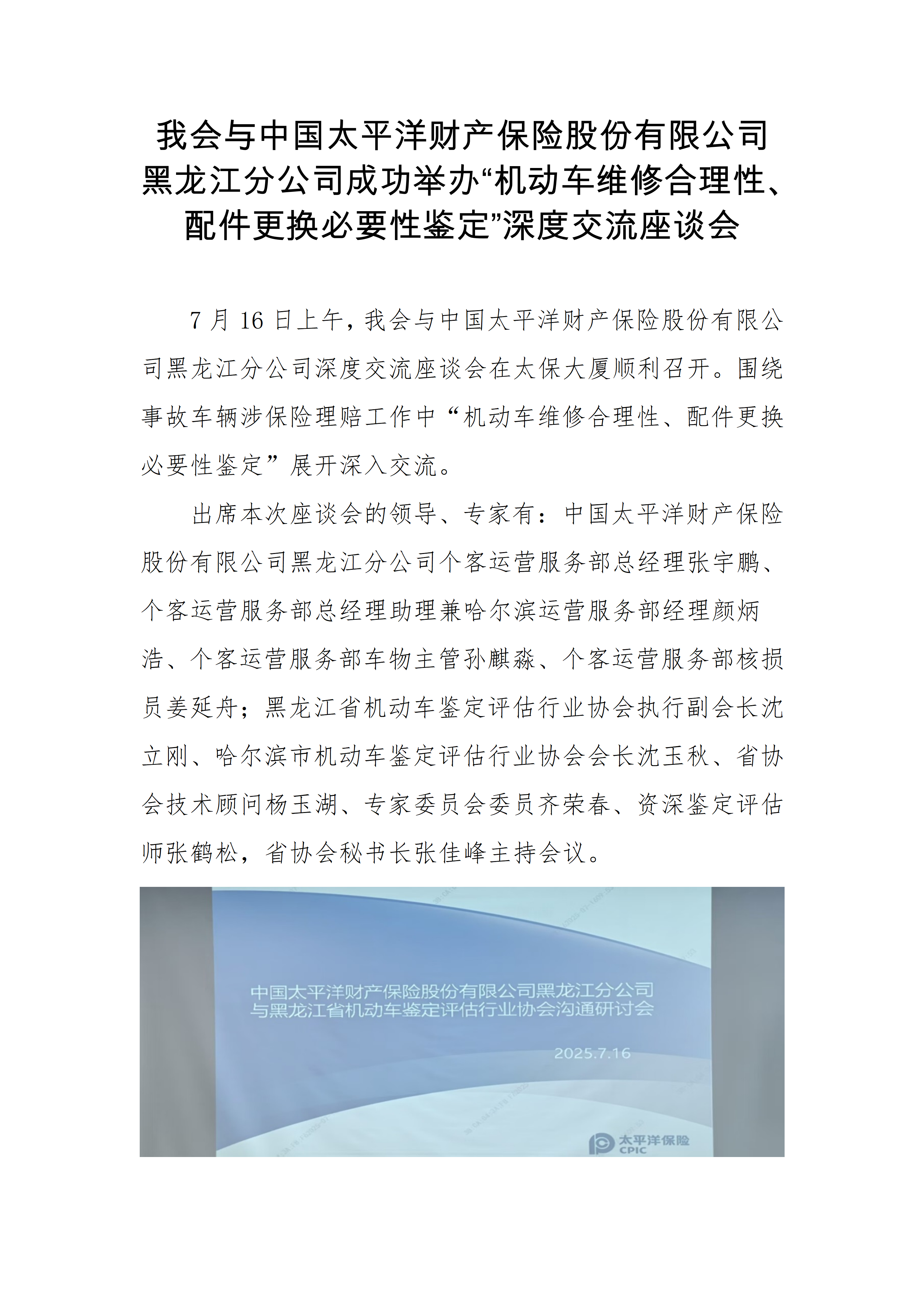 我会与中国太平洋财产保险股份有限公司黑龙江分公司成功举办“机动车维修合理性、配件更换必要性鉴定”深度交流座谈会
