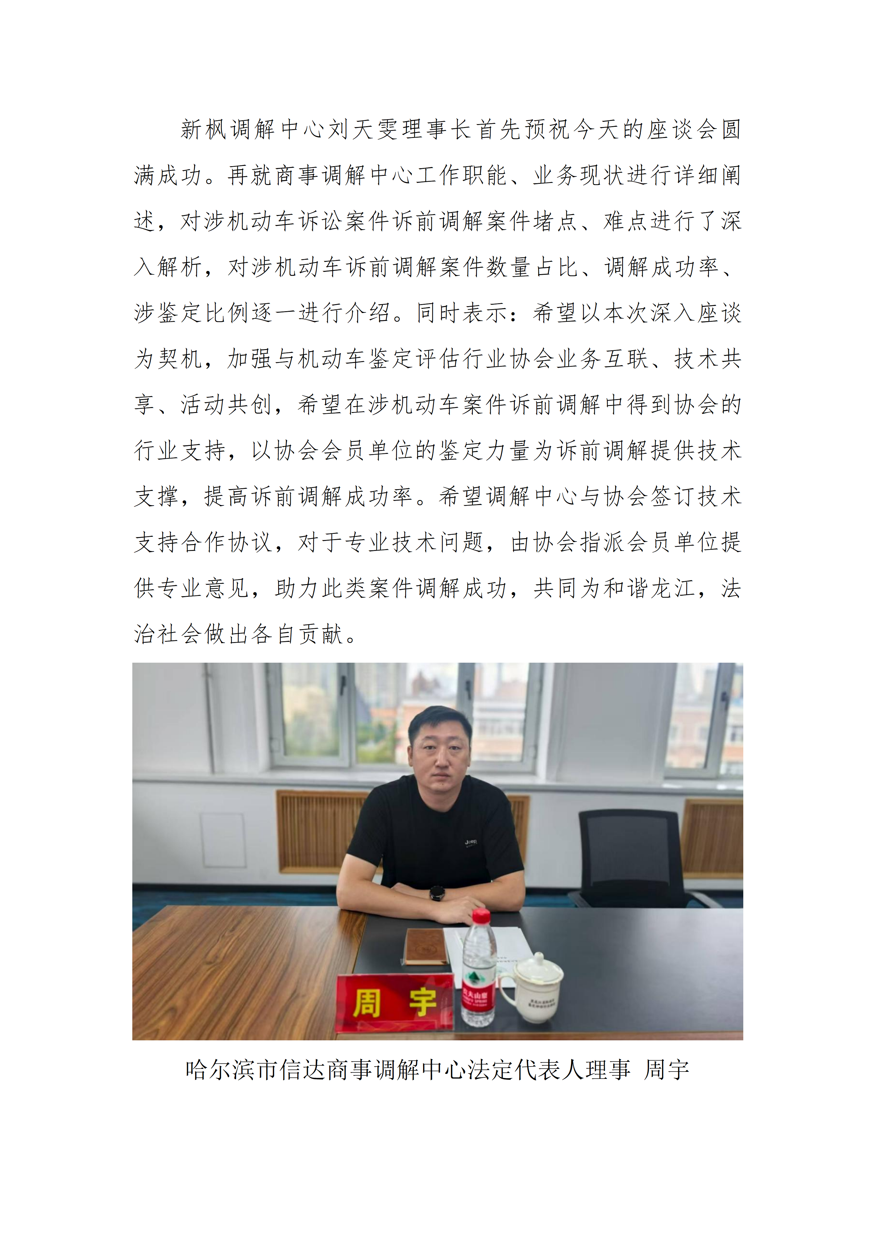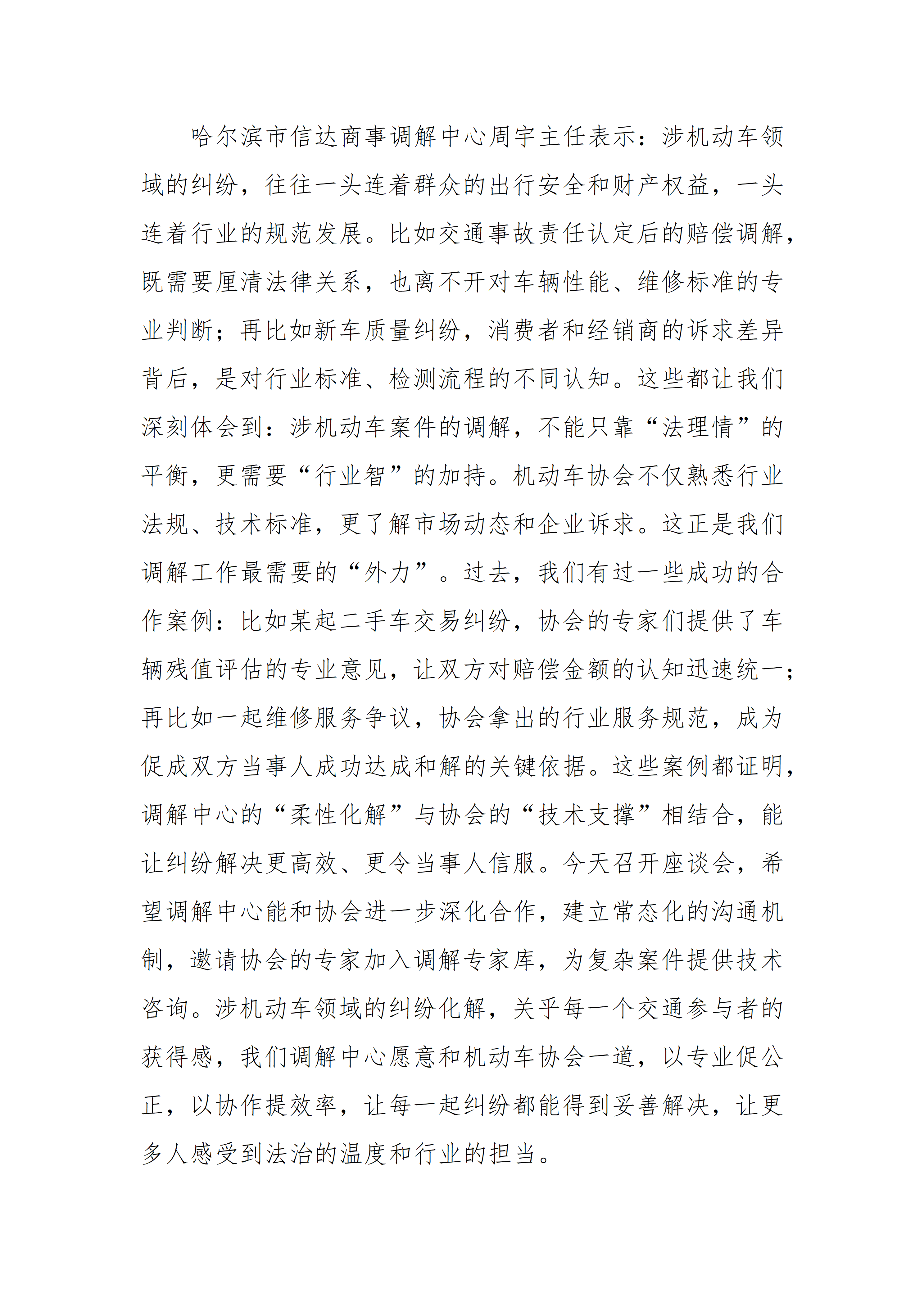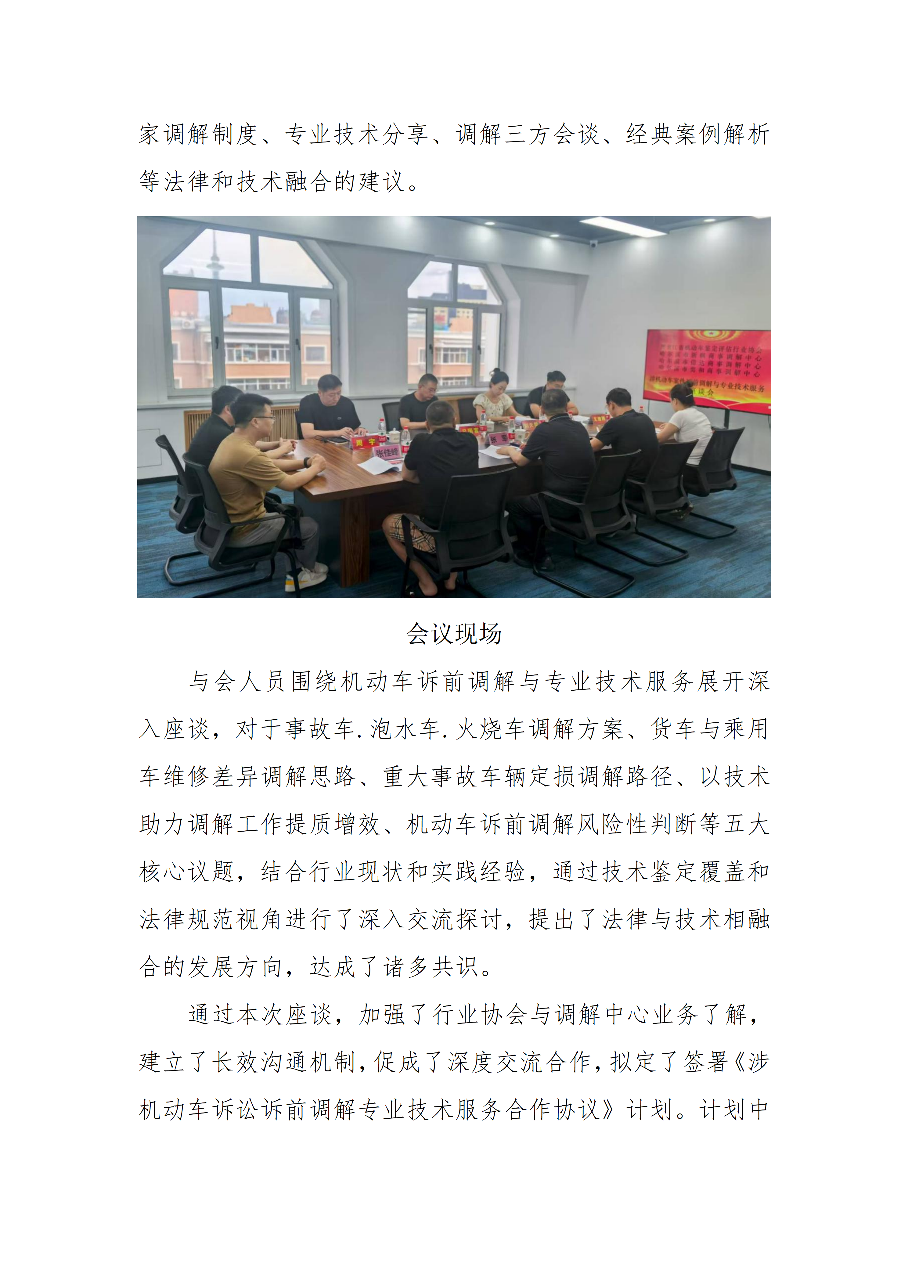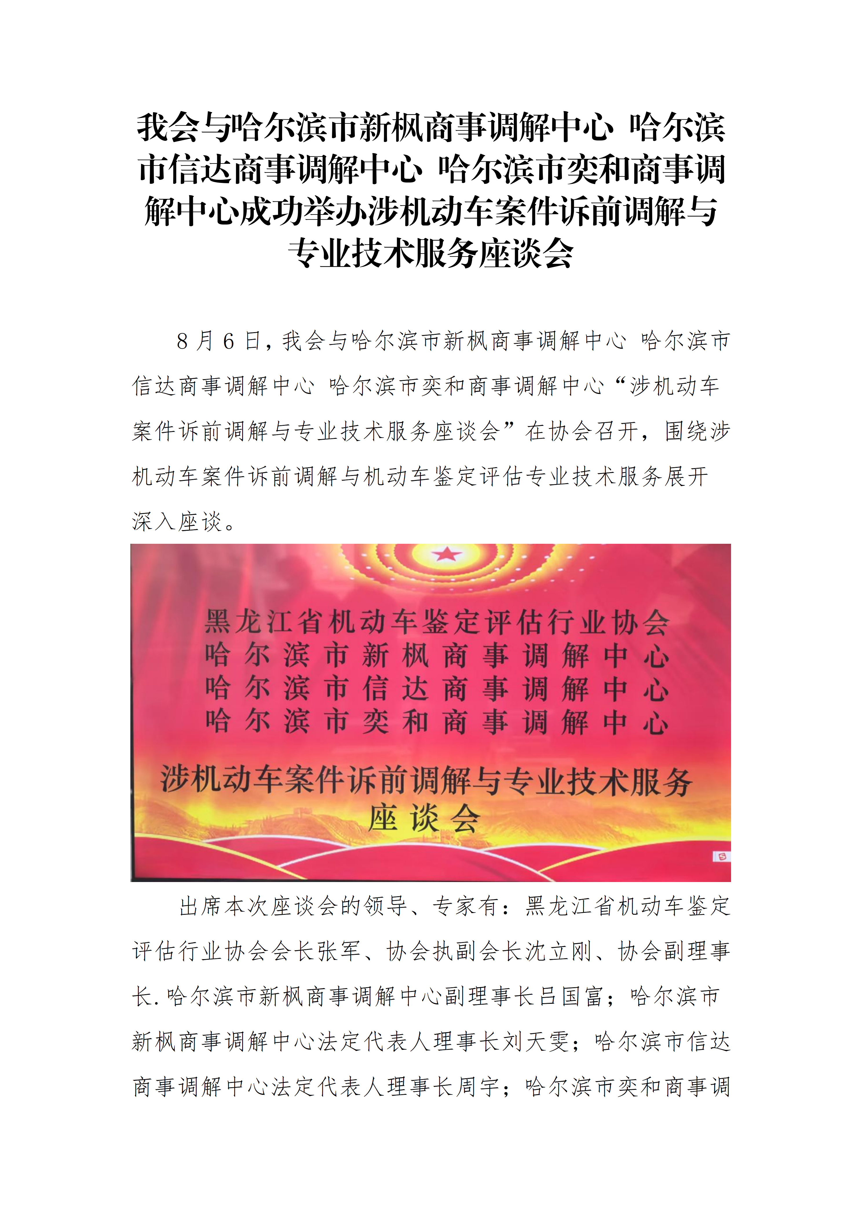 我会与哈尔滨市新枫商事调解中心 哈尔滨 市信达商事调解中心 哈尔滨市奕和商事调 解中心成功举办涉机动车案件诉前调解与 专业技术服务座谈会