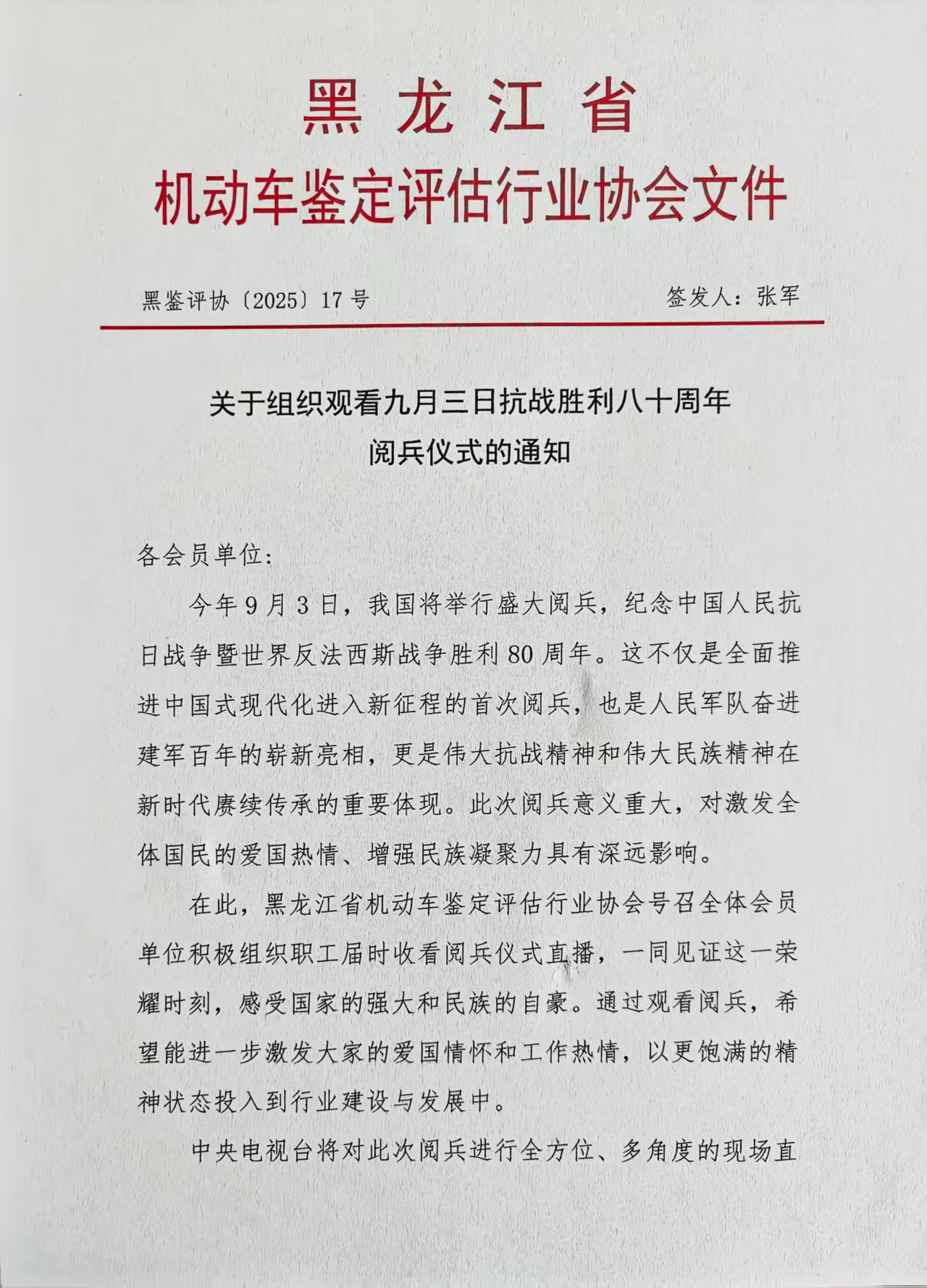 关于组织观看九月三日抗战胜利八十周年 阅兵仪式的通知