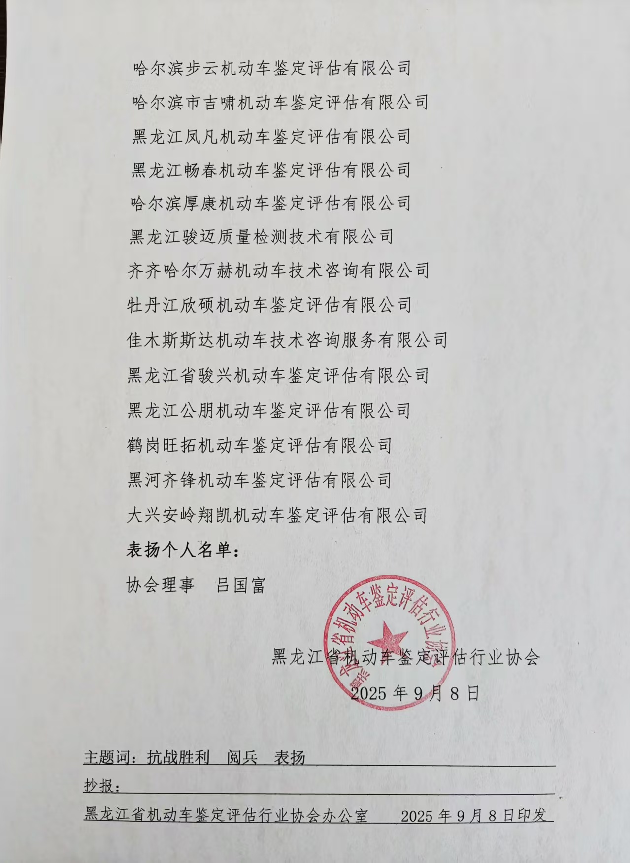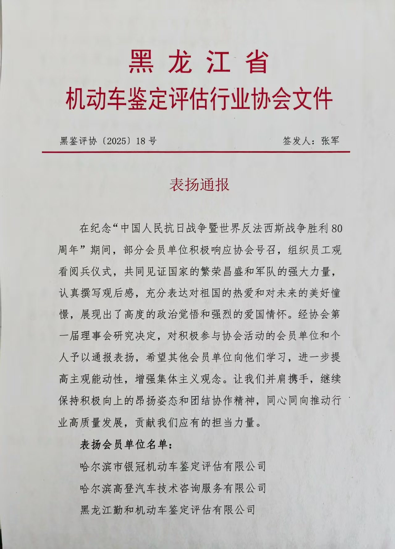 表扬通报