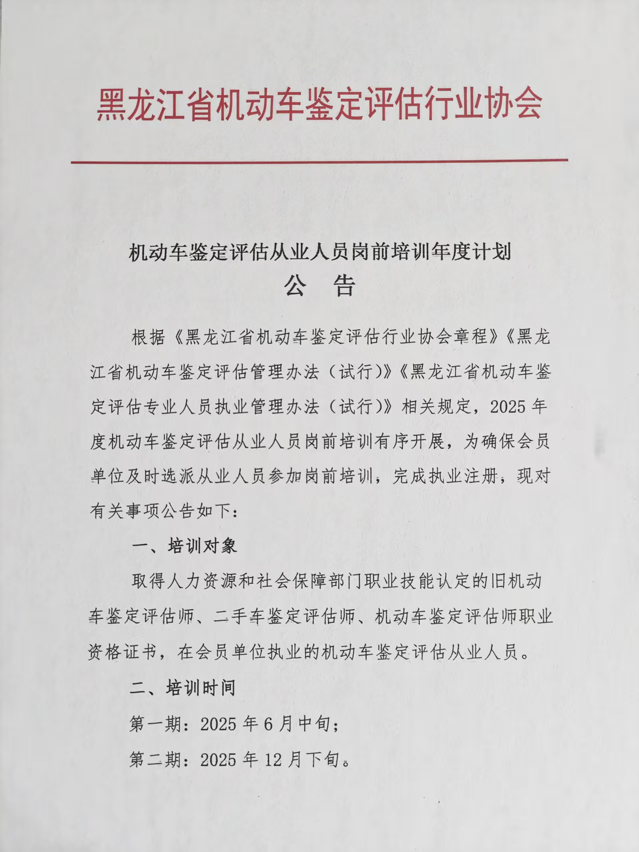 机动车鉴定评估从业人员岗前培训年度计划 公 告