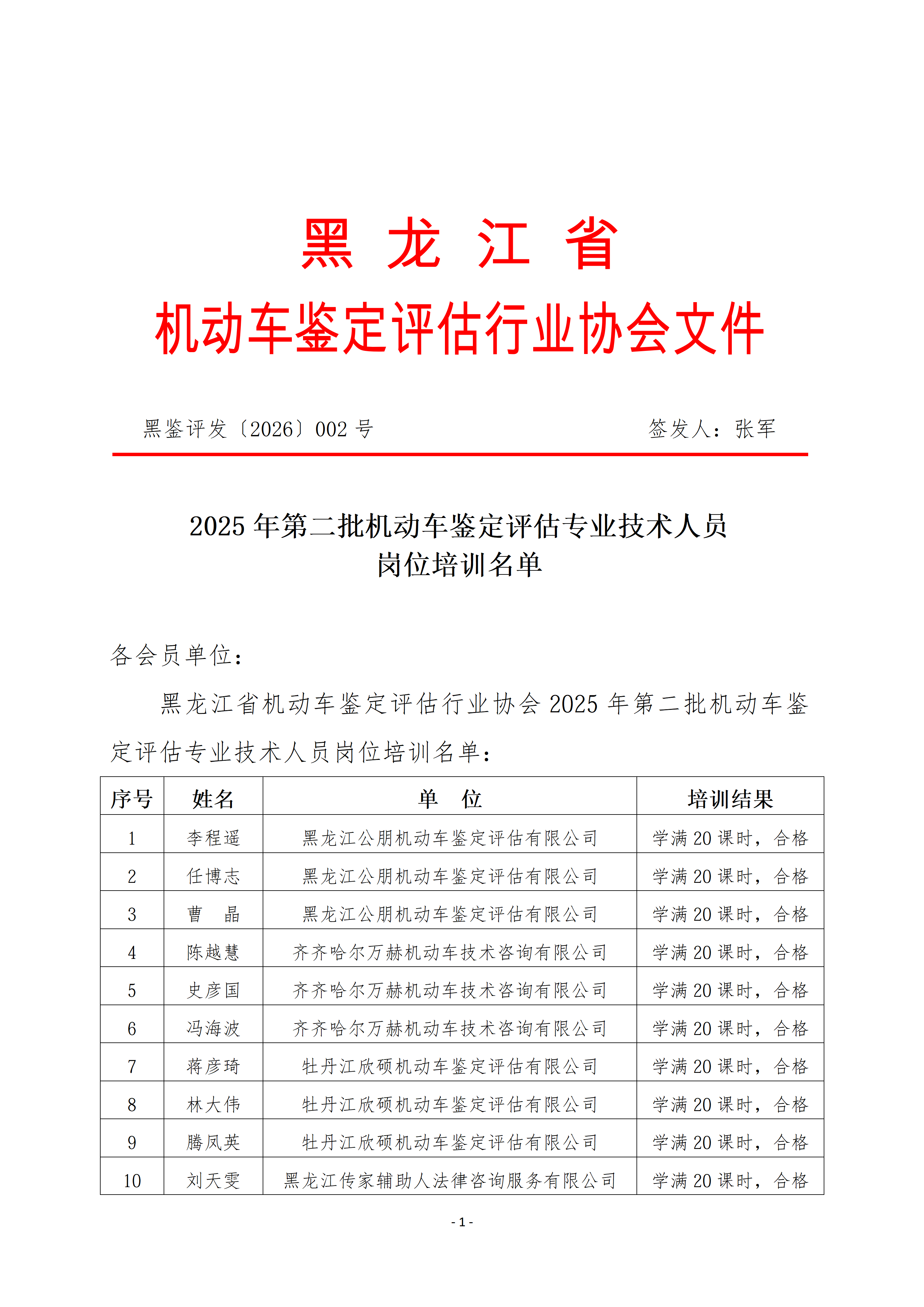 2025年第二批机动车鉴定评估专业技术人员 岗位培训名单