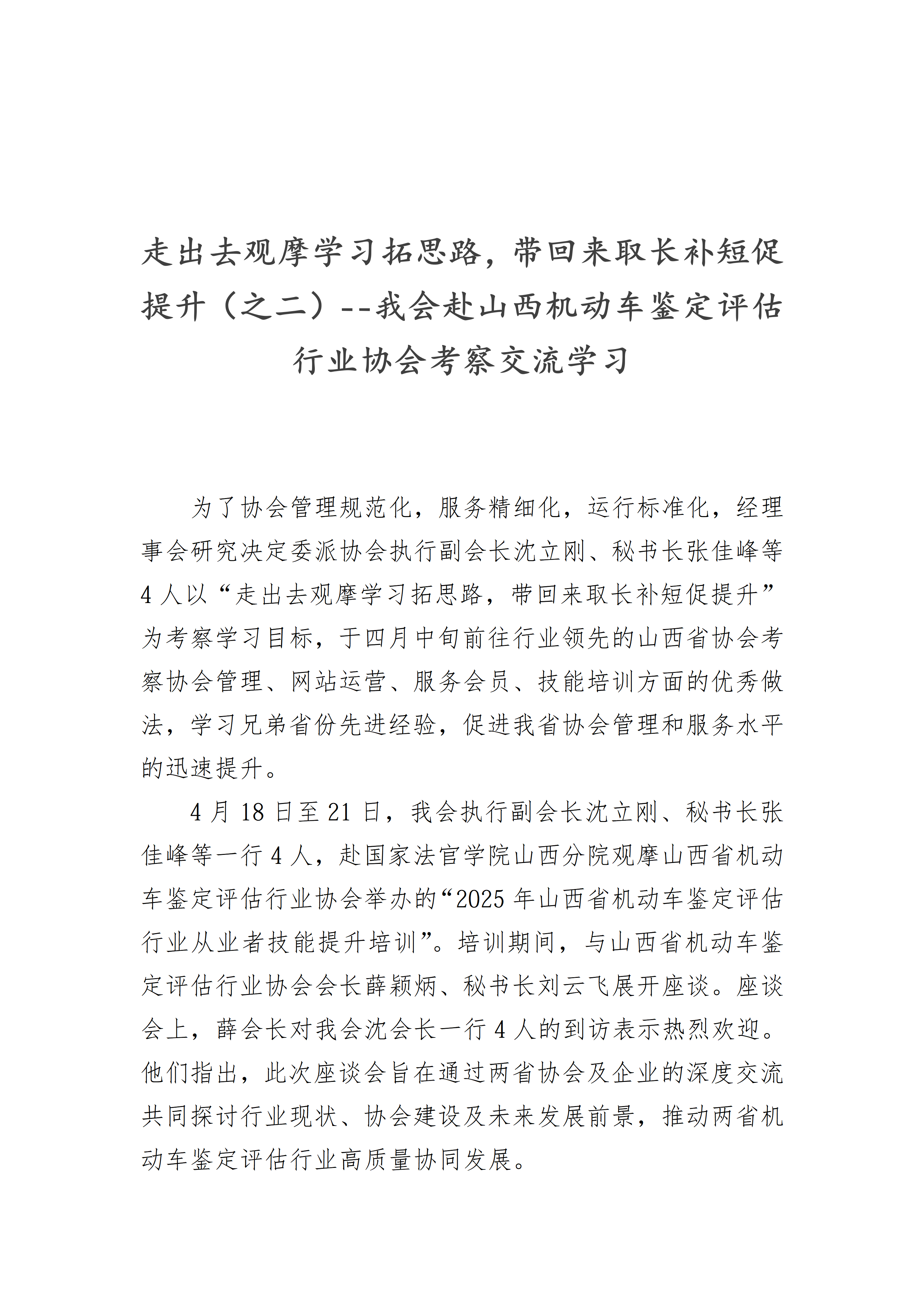 走出去观摩学习拓思路,带回来取长补短促提升(之二)--我会赴山西机动车鉴定评估行业协会考察交流学习