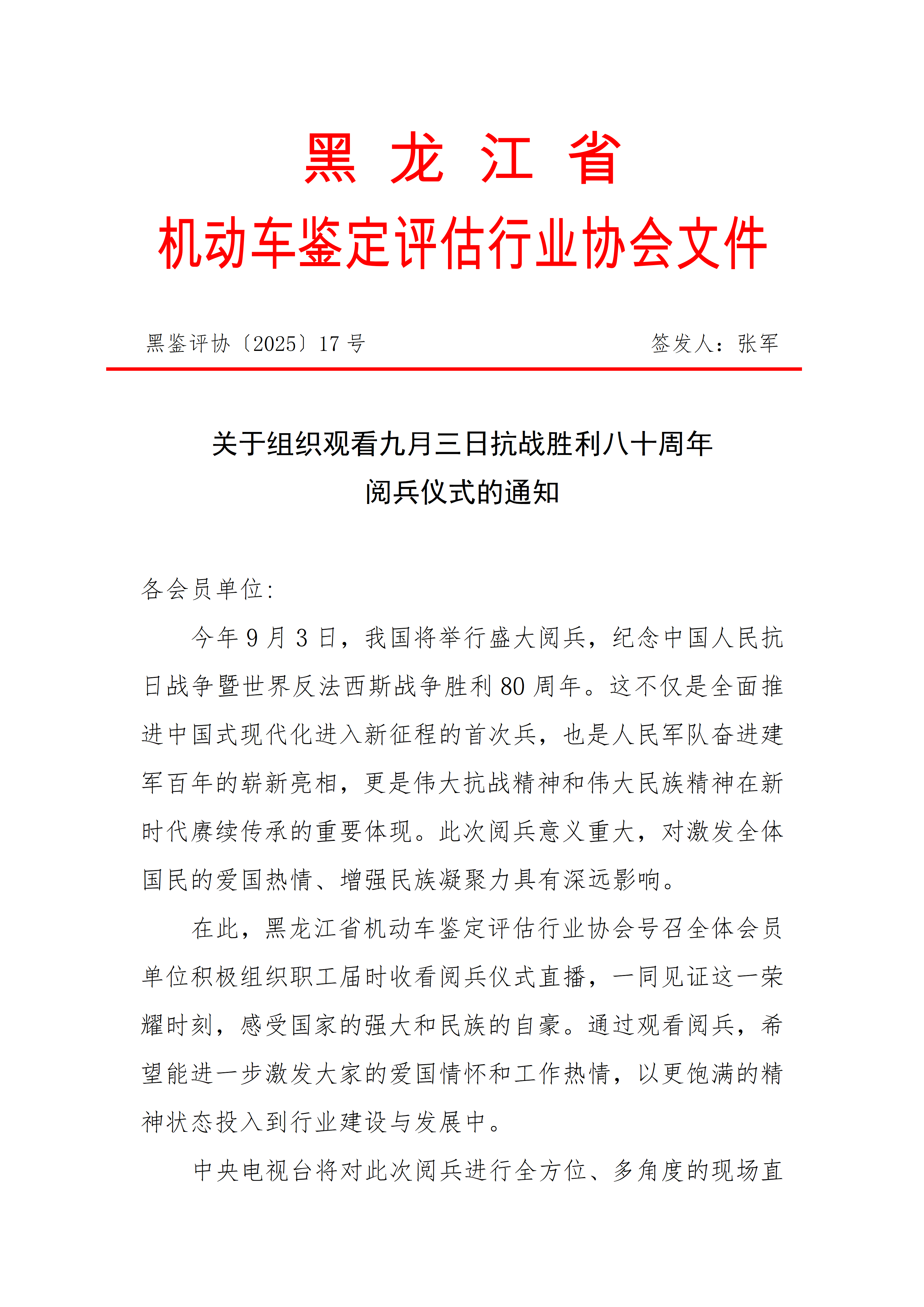 关于组织观看九月三日抗战胜利八十周年 阅兵仪式的通知