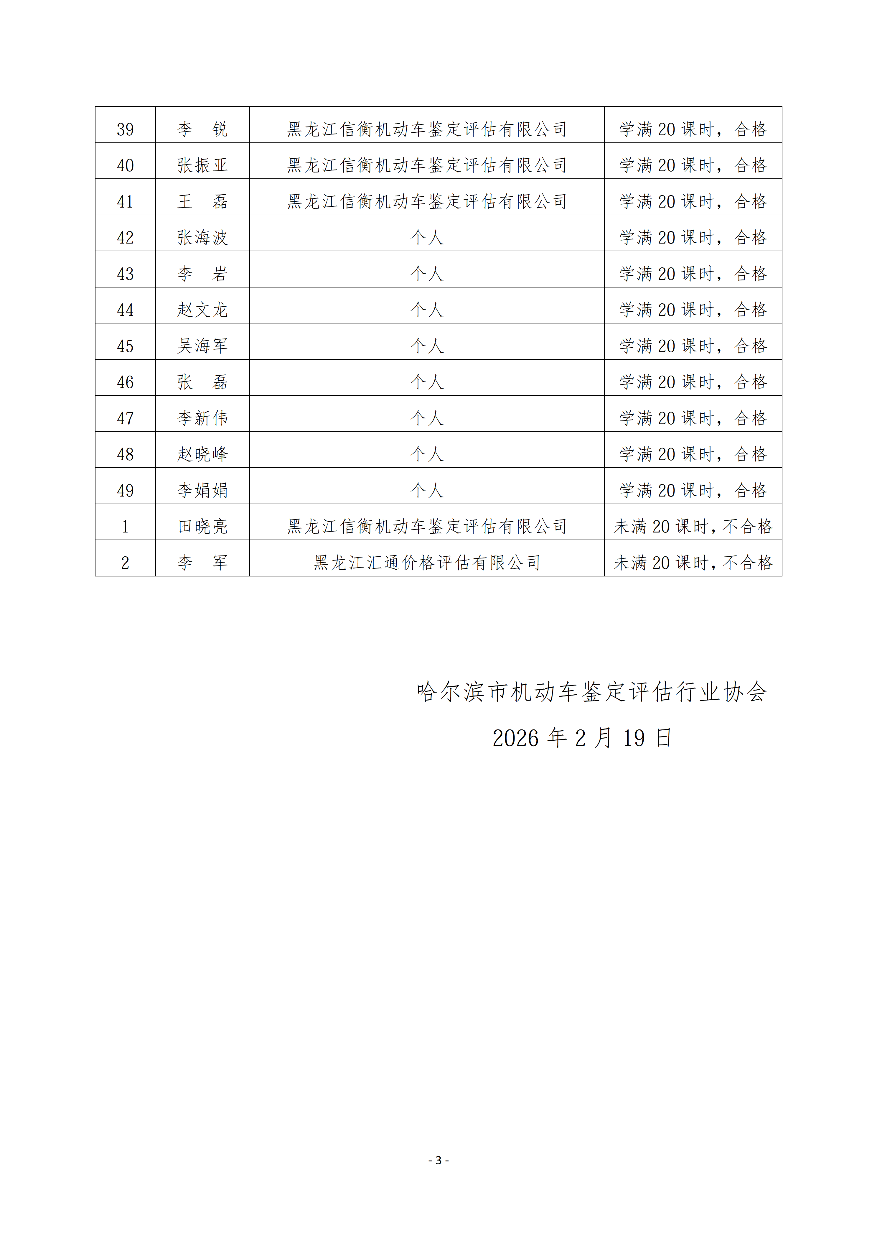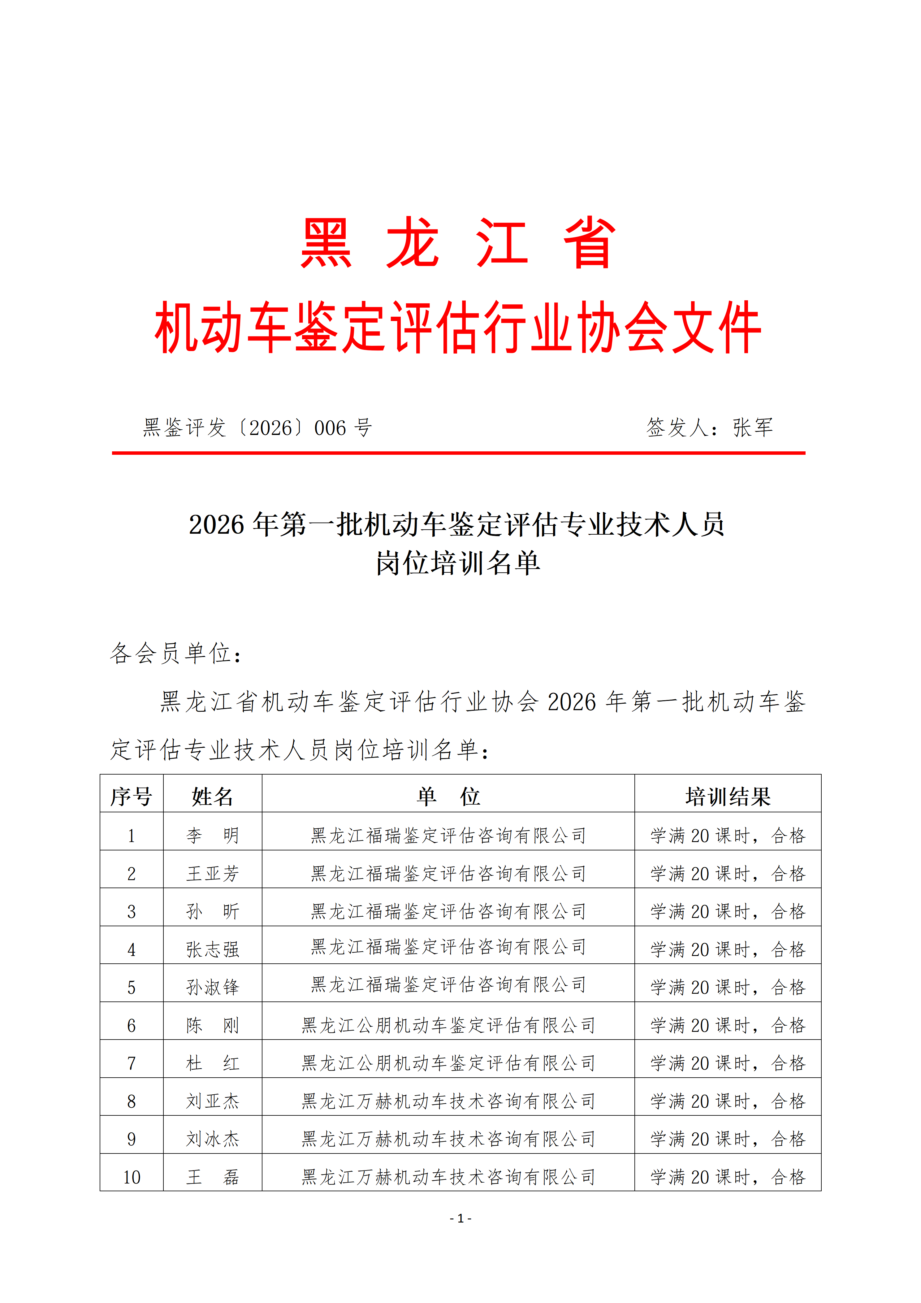 2026年第一批机动车鉴定评估专业技术人员 岗位培训名单