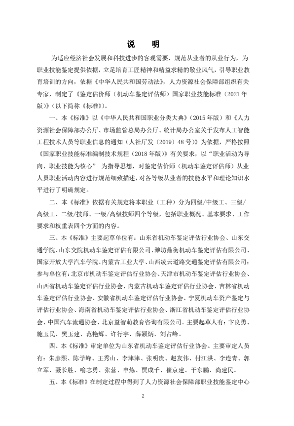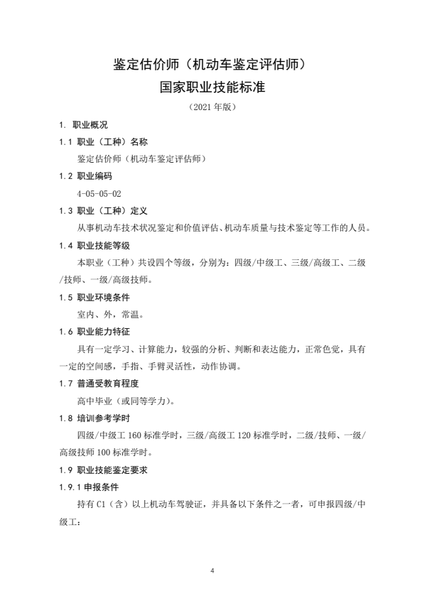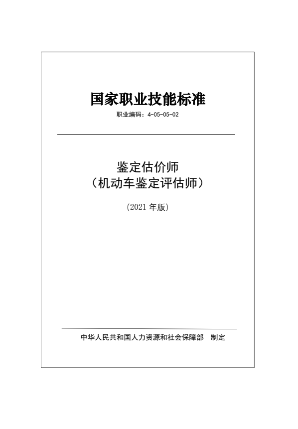 国家职业技能标准 鉴定估价师 (机动车鉴定评估师)(2021 年版)